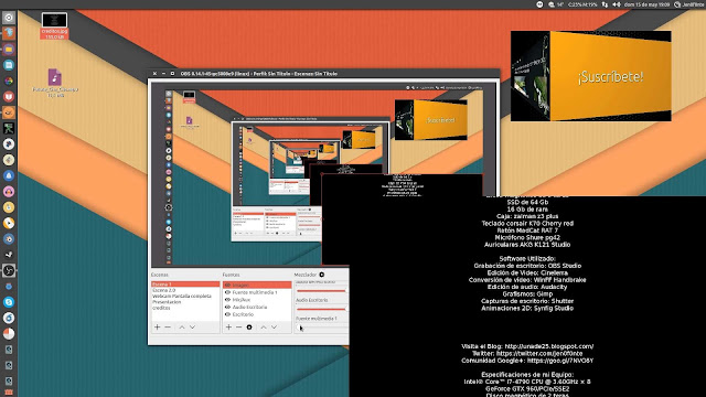En parte este problema se soluciona de dos formas: en primer lugar, un segundo monitor ayuda muchísimo, y en OBS se convierte en una herramienta prácticamente imprescindible si queremos hacer producciones medianamente complejas. En el caso que nos ocupa, si queremos añadir escenas de título o de créditos, es una ayuda inestimable poder ver en tiempo real qué está grabando OBS, con su ventana en el monitor secundario, mientras nosotros seguimos con nuestro monitor principal "enfocando" el escritorio desnudo o la aplicación sobre la que estemos hablando.